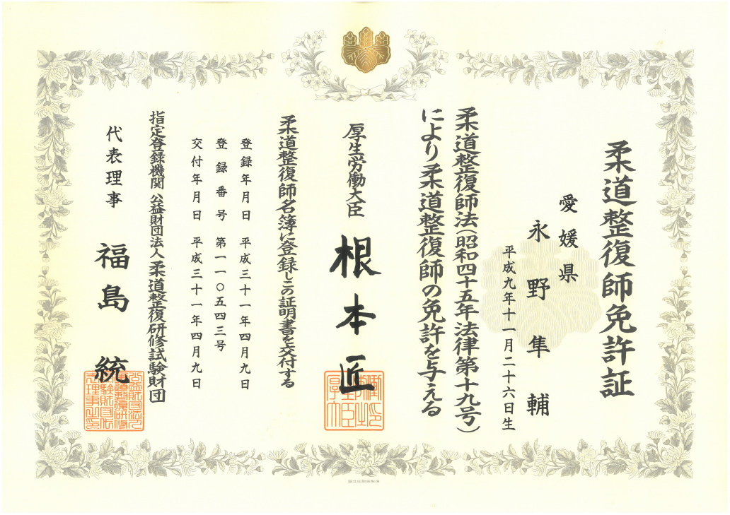 柔道整復師免許証