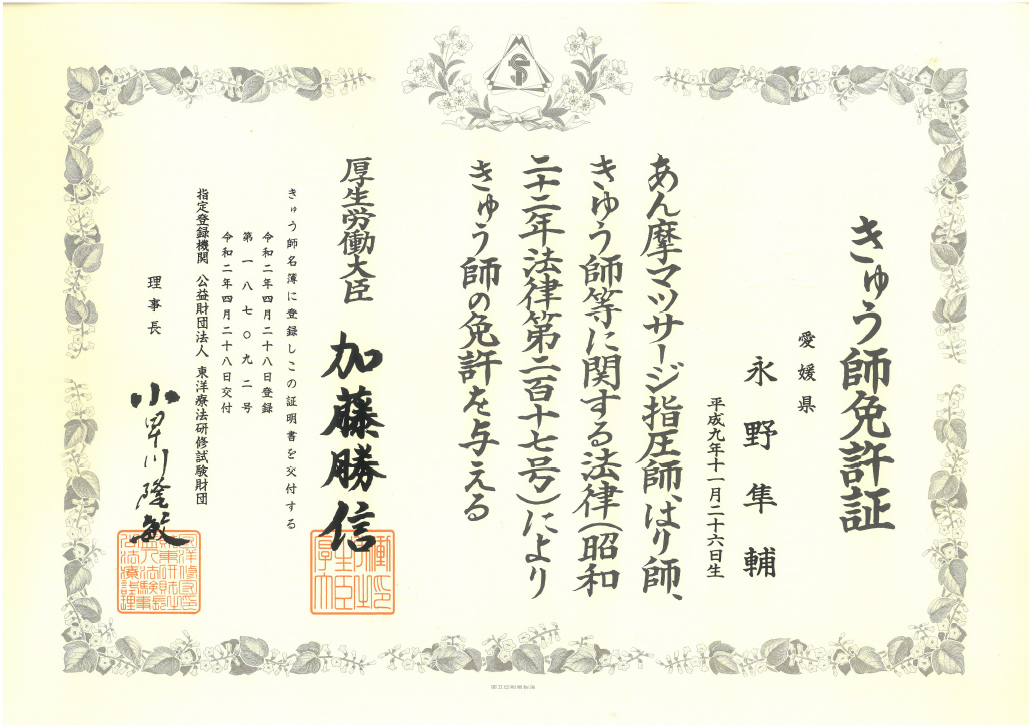 きゅう師免許証