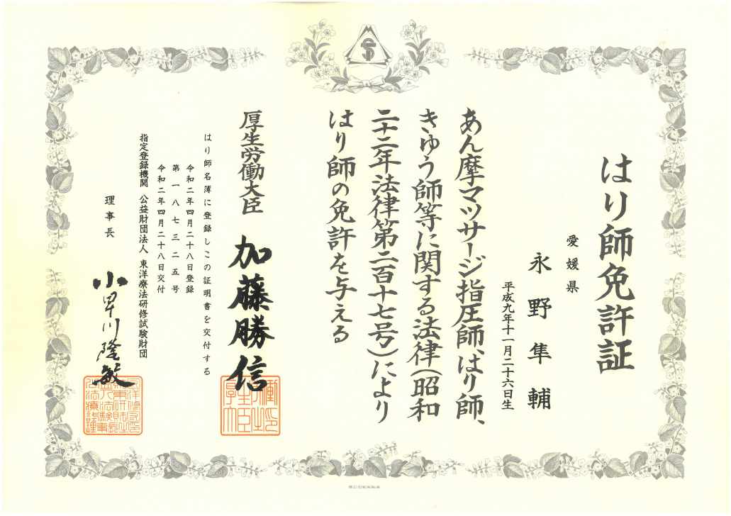 はり師免許証